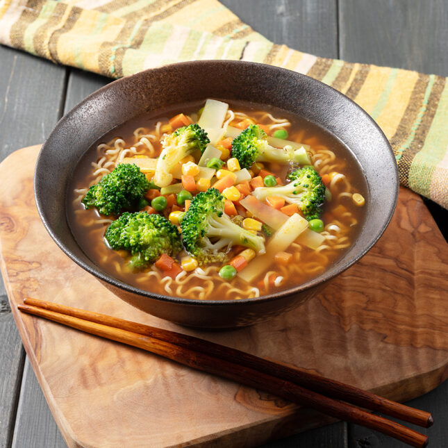 野菜と一緒に食べると美味しさがアップします。※旨みカレーラーメンのリニューアルになりますので、旨みカレーラーメンは2024年2月末で終売となります。